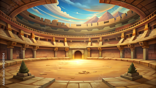 Ancient Sunlit Arena with Rocky Walls and Sand-Filled Ground