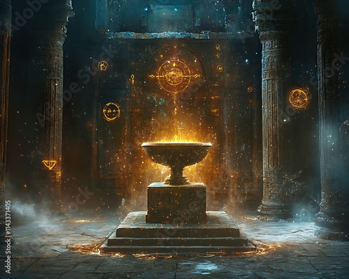 Ancient Temple Chamber Flaming Cauldron Mystical Ritual