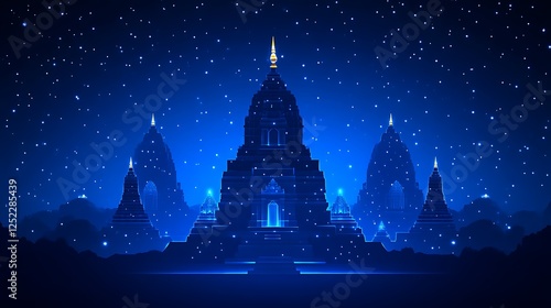 Ancient Temples Illuminated Under a Starry Night Sky