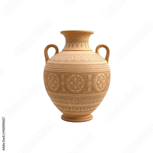 Ancient Vase 3d Model, Intricate Design, Plain White Backdrop. A Simple Presentation, Art History, Archaeology, And Cultural Heritage. Detailed Texture, Showcase The Craftsmanship. Pottery, Ceramics,