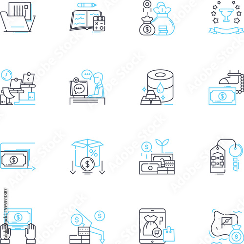 Angel investing linear icons set. Investment, Funding, Startup, Angel, Equity, Entrepreneur, Capital line vector and concept signs. Pitch,Seed,Venture outline illustrations