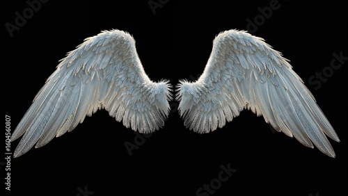 Angel wings set apart on a dark background showcasing the blue sky beyond
