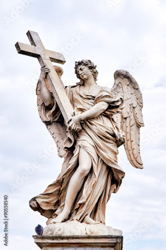 Angel with the Cross statue on Ponte Sant Angelo bridge in Rome