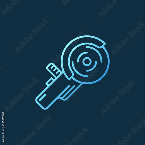 Angle Grinder vector blue concept linear icon or logo on dark background