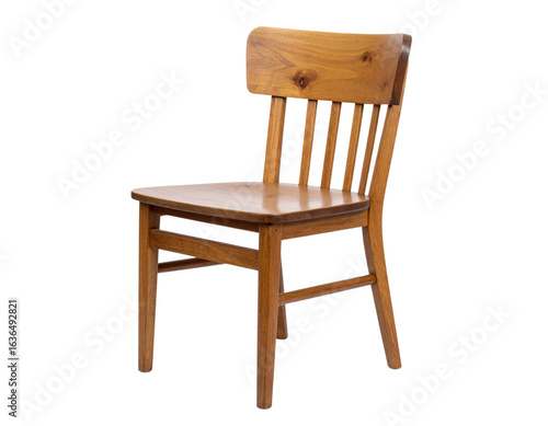 Angled Side View of Rustic Wooden Chair with Visible Wood Knots, Isolated on White