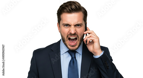 Angry Businessman Yelling on Phone Call Frustration, Stress, and Communication Breakdown