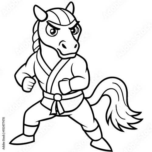 Angry Karate horse White Background line art vector illustration