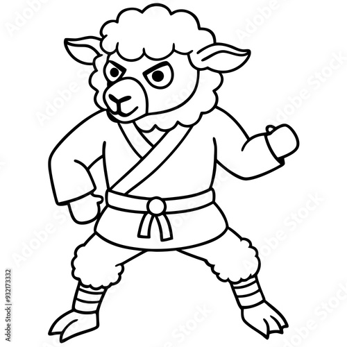 Angry Karate sheep White Background line art vector illustration
