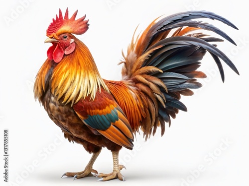 Angry Rooster Isolated on White Background - Panoramic Stock Photo