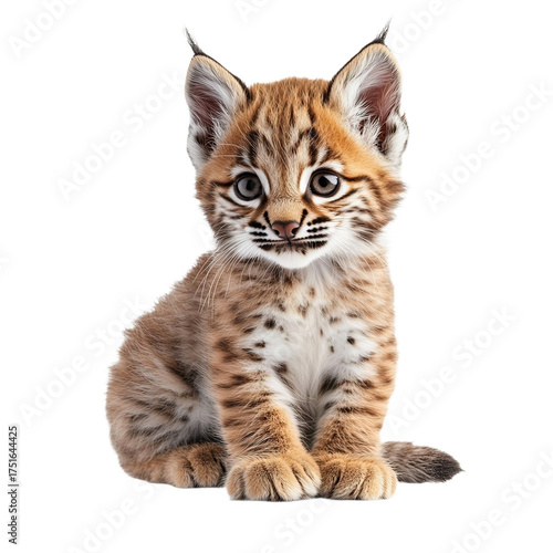 Angular view full body shot of a baby lynx studio shot isolated on a white transparent background