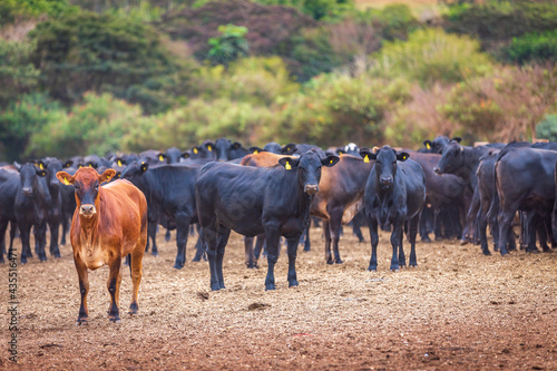 Angus cattle herd at feed lot in Brazil's coutryside. Agribusiness photography