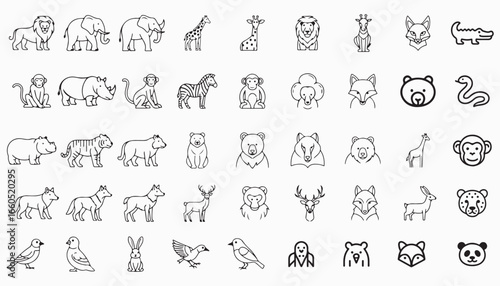 Animal Icons vector: Simple Line Art, Wildlife Collection, Zoo Vector Graphics