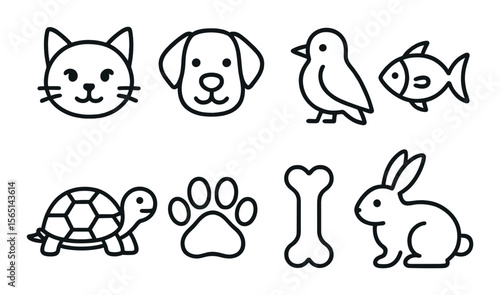 Animal outline icons set – simple and minimalist wildlife and pet symbols