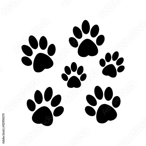 animal paw prints silhouette, black and white silhouette, vector and illustration