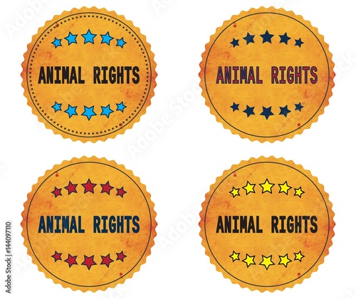 ANIMAL RIGHTS text, on round wavy border vintage, stamp badge.