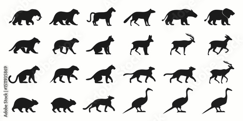 Animal Silhouettes. Black Vector Collection of Wild and Domestic Creatures