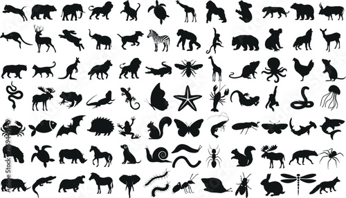 Animal silhouettes vector collection, includes lizard, reptile, amphibian, fish, insect silhouette, perfect for logo illustration, and graphic design