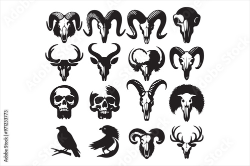 Animal skull silhouette, icons set 25.eps