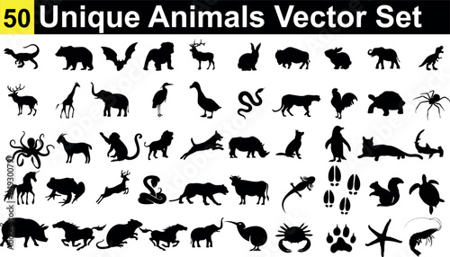animal vector collection, Unique and diverse. Featuring a lion, giraffe, snake, bird, spider, cat and more. Perfect for wildlife enthusiasts, educational materials, and creative projects