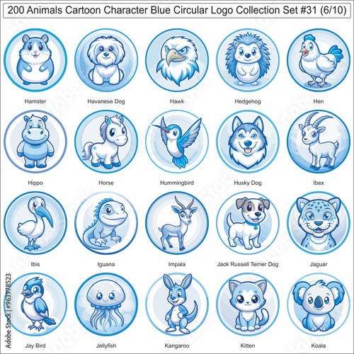 Animals Cartoon Character Blue Circular Logo Collection Set of 200 Isolated Animals Part 6