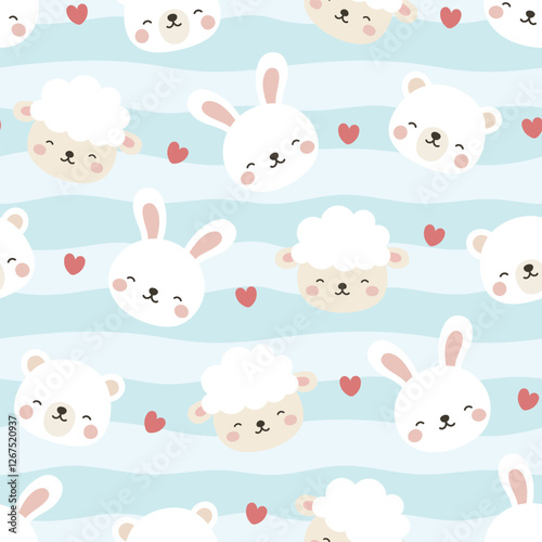 Animals Cute Seamless Pattern, adorable design for kids, vector illustration