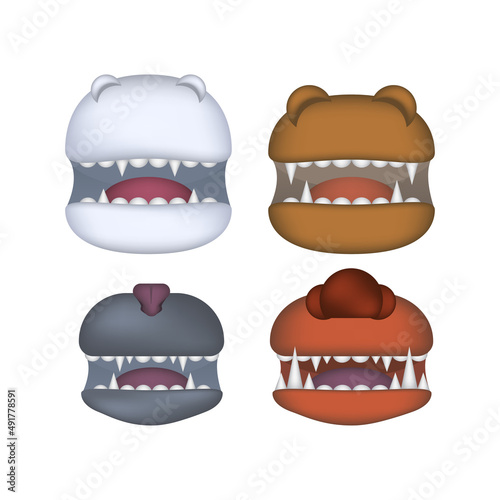 Animals mouth vector open jaw with teeth or fangs of roaring animals angry lion or cat and laughing bear with aggressive shark illustration set of animalistic beast isolated on white background