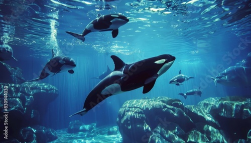 Animals of the underwater sea world. Ecosystem. Colorful tropical fish. Life in the coral reef