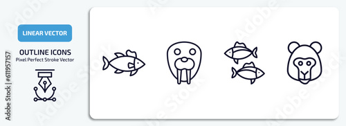animals outline icons set. animals thin line icons pack included salmon, walrus, tuna, baboon vector.