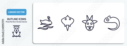 animals outline icons set. animals thin line icons pack included swan, ray, goat, chameleon vector.