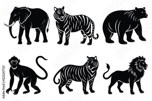 Animals silhouette set. Wild animals silhouette collection vector illustration on white background