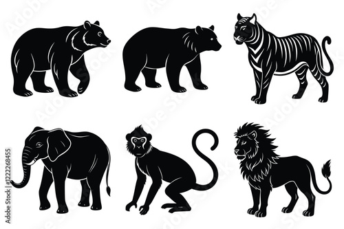 Animals silhouette set. Wild animals silhouette collection vector illustration on white background