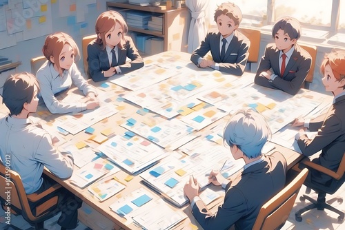 Anime businessman showcasing creativity and innovation in a brainstorming session