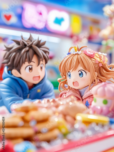 Anime figures, shopping for treats, candy store