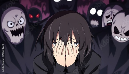 Anime Girl Afraid of Scary Skeletons Digital Art