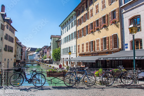 Annecy Canal and Streets on a Sunny Summer Day with Blue Sky