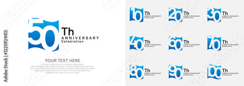 Anniversary logo set vector design, blue and black color for celebration event