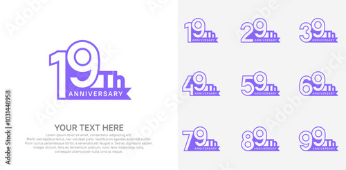 Anniversary logo set vector design, purple color for celebration event