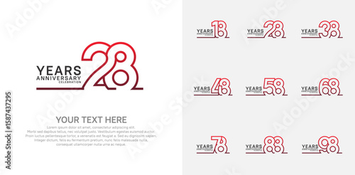 Anniversary logo set vector design, red color for celebration event