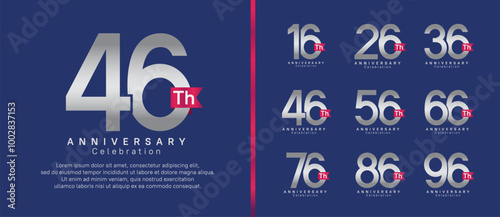anniversary logo set. vector design silver color with pink ribbon can be use for celebration event