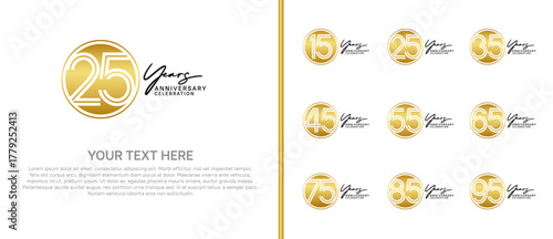 anniversary logo set with circle. gold and black color on white background for celebration moment