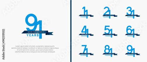 anniversary logo style set. vector design blue color with ribbon for celebration moment