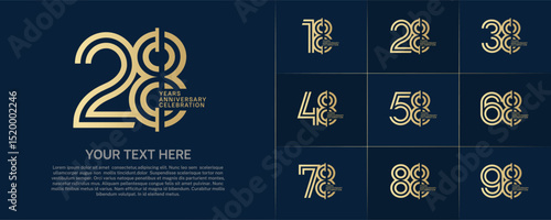 Anniversary logo type set with double line number. golden color for celebration event