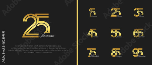 anniversary vector logo set, gold and silver handwriting can be use for celebration