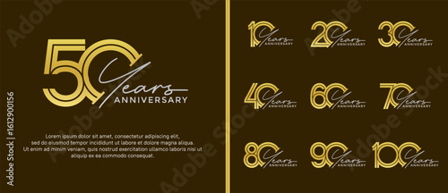 anniversary vector logo set, gold color and silver handwriting can be use for celebration
