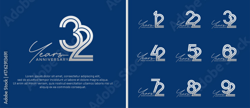 anniversary vector logo set, silver color with handwriting can be use for celebration