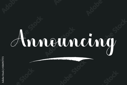 Announcing Bold Calligraphy White Color Text On Dork Grey Background