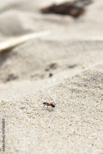 Ant crawls on the sand