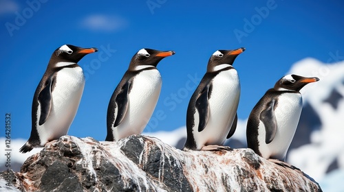Antarctic penguins rocky outcrop mountains sunny day wildlife documentary