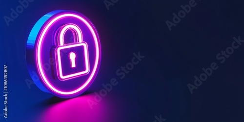 Anti tracking and protection concept. Neon lock symbol representing security and protection.