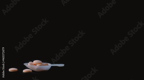 Antibiotic tablet placed on a black background.